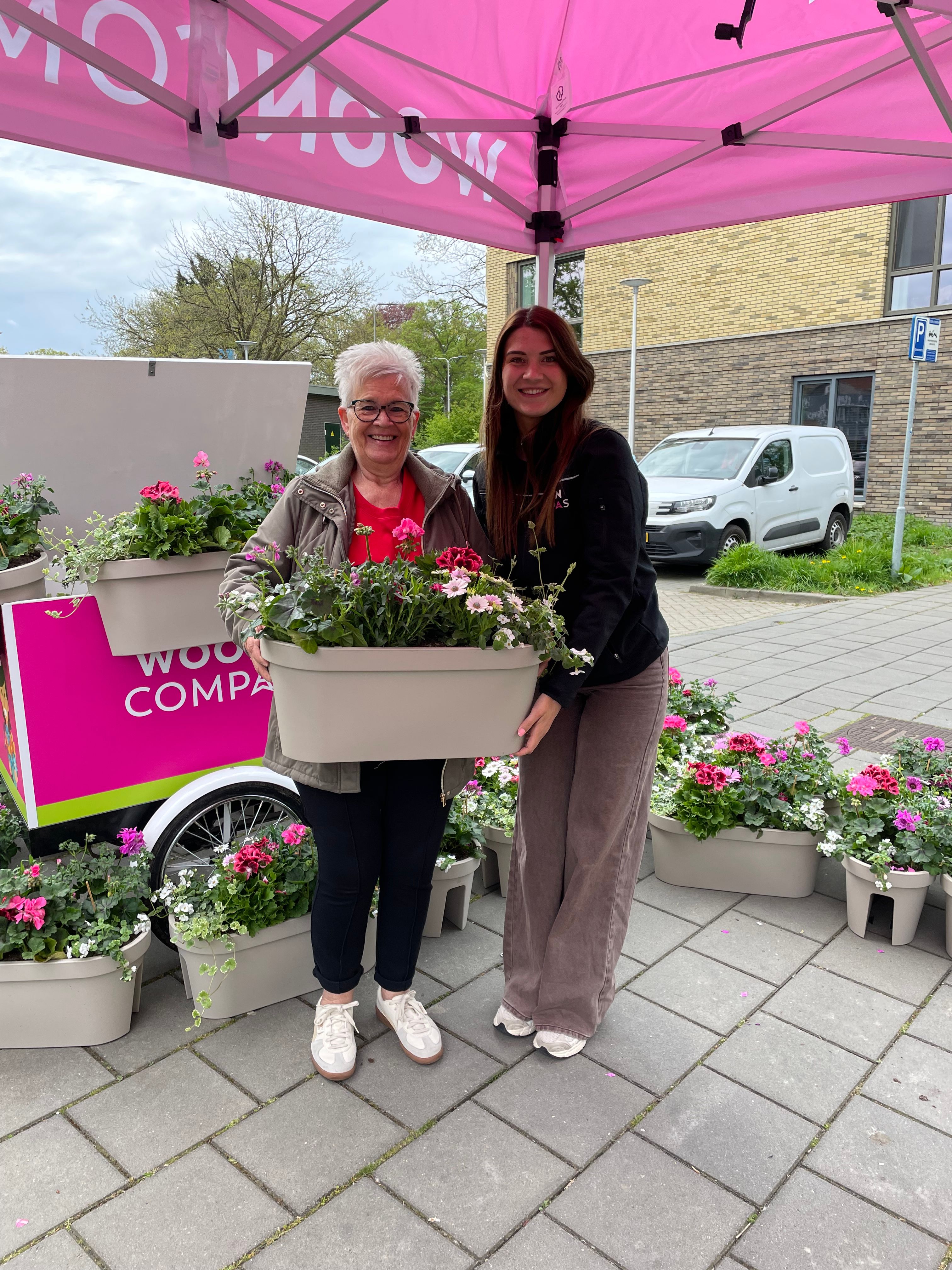 Met een TukTuk deelden we koffie en iets lekkers uit. Bewoners kregen een gevulde balkonbak die direct aan de reling kan worden bevestigd. Dit zorgt voor meer groen en kleur aan de gevels.